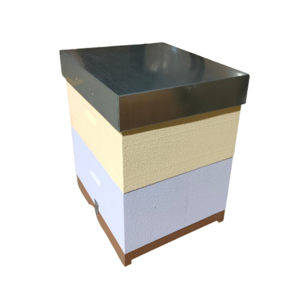 A Colmeia Langstroth Completa é fabricada em madeira resistente e pintada com tinta de areia, garantindo proteção contra a humidade e excelente durabilidade.