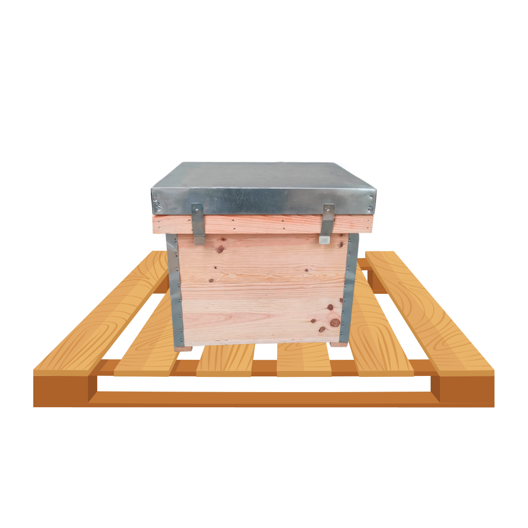 A Palete com 16 Colmeias Layens com acabamento em cru foi concebida para apicultores profissionais que procuram colmeias duráveis, uniformes e prontas a utilizar.