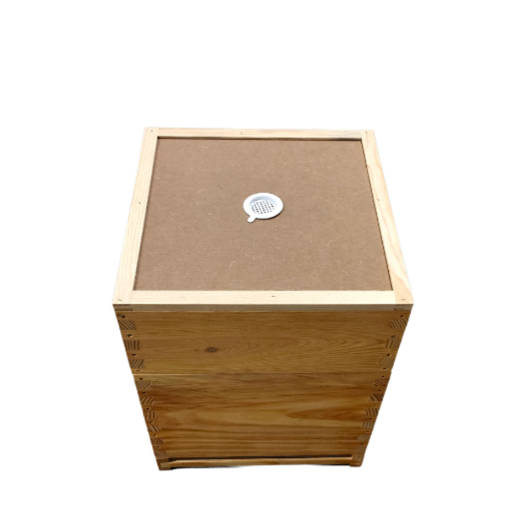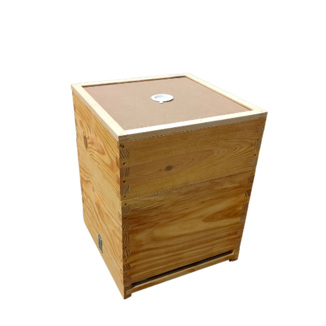 Fabricada em madeira de qualidade com sistema em malhete, oferece elevada durabilidade, bom isolamento térmico e estabilidade estrutural.É fornecida sem telhado, permitindo ao apicultor escolher a cobertura mais adequada ao seu sistema de trabalho.