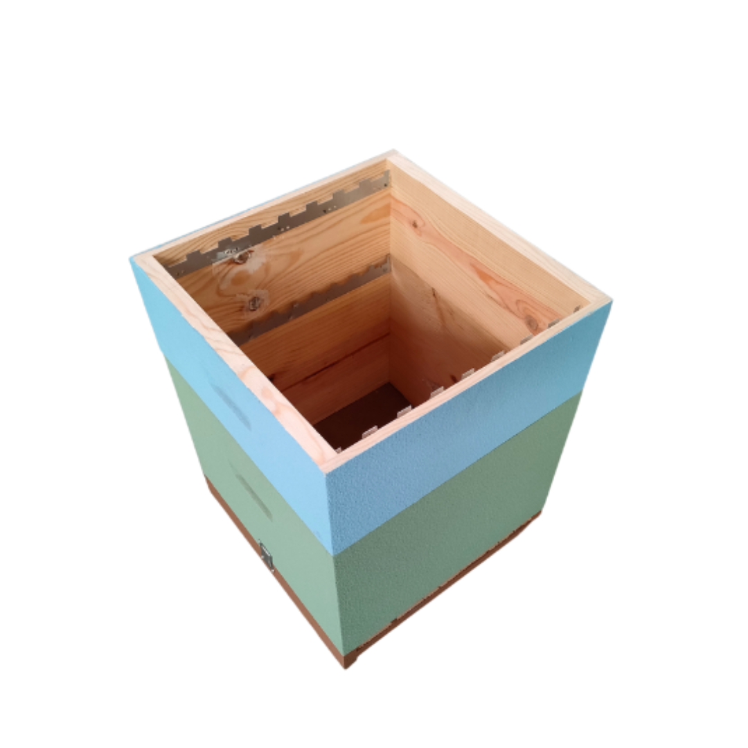 Segue o modelo Lusitano, ideal para apicultores que pretendem montar os seus próprios quadros ou personalizar a colmeia conforme as necessidades do apiário. Fornecida sem quadros, oferece flexibilidade total na configuração interna.