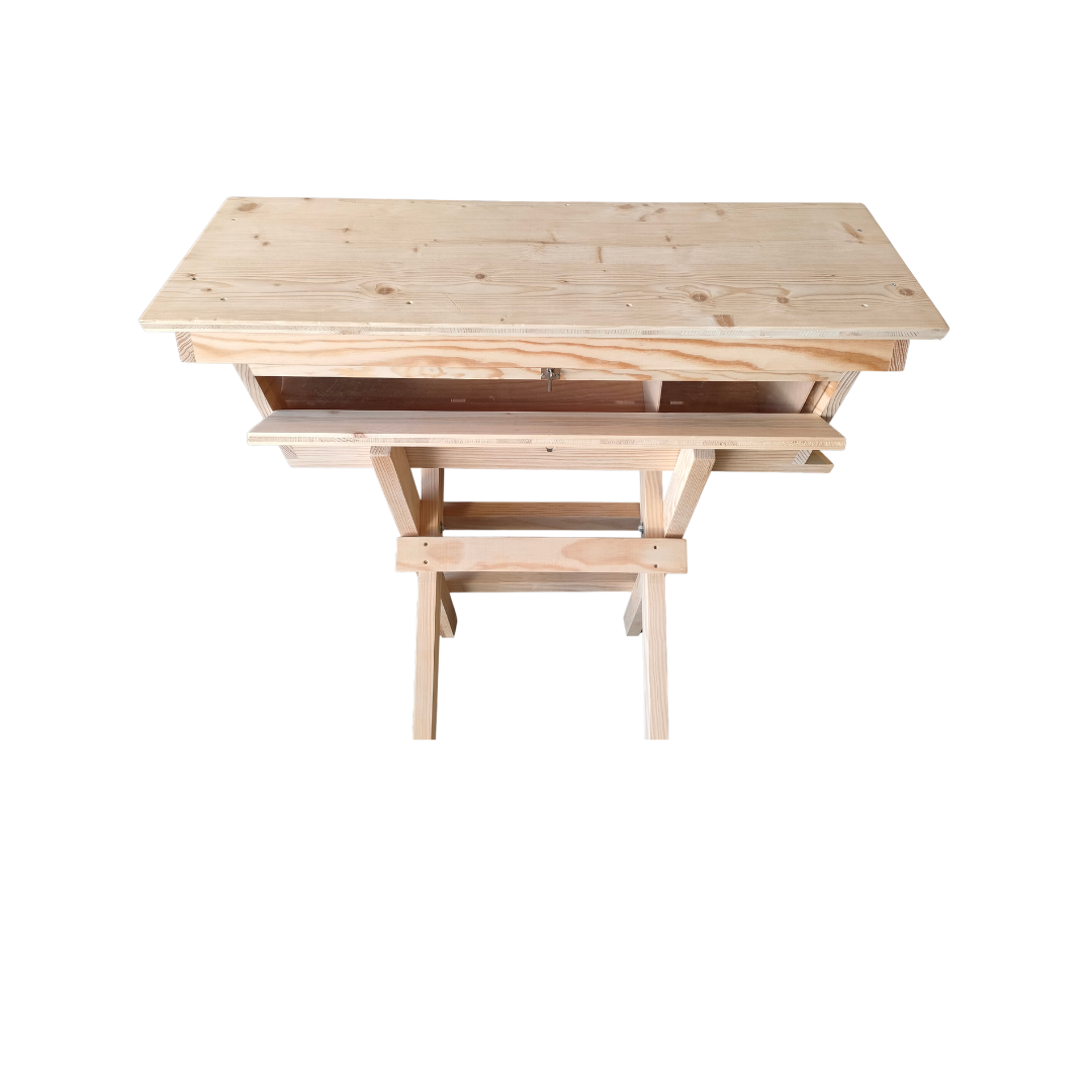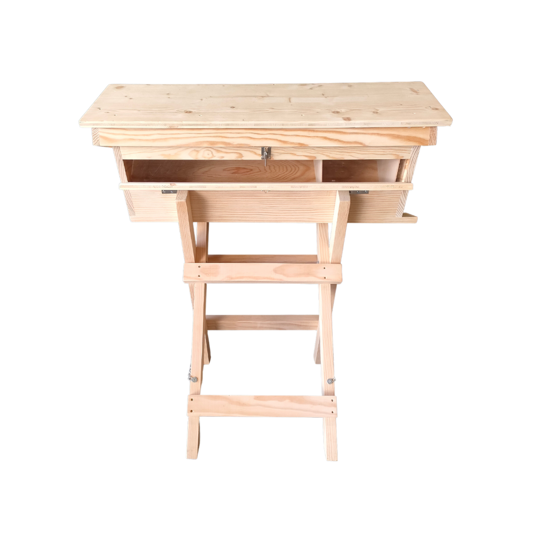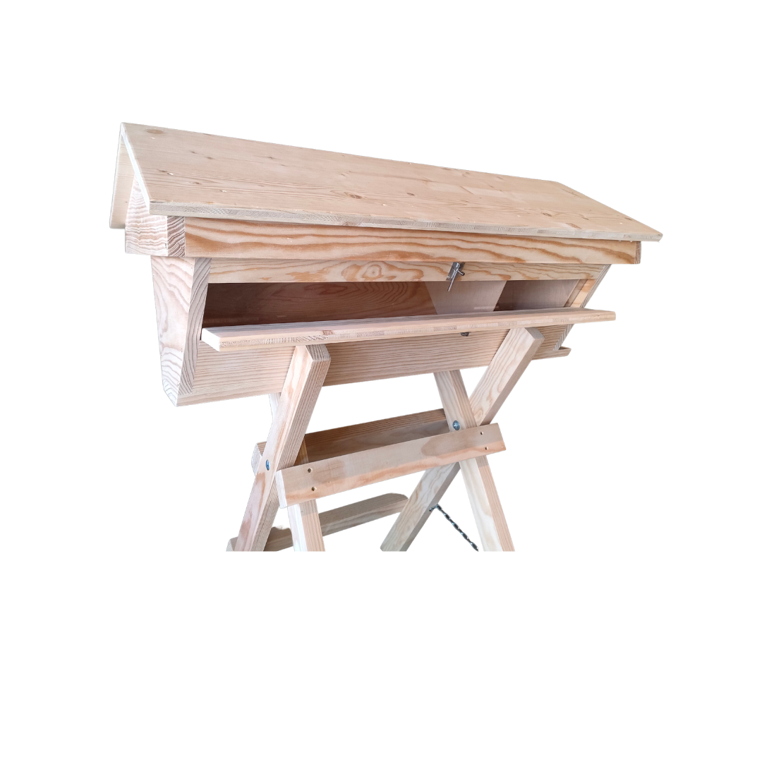 Fabricada em madeira resistente, esta colmeia de design horizontal permite às abelhas construir os seus favos de forma livre, reproduzindo o comportamento natural que teriam num tronco de árvore.