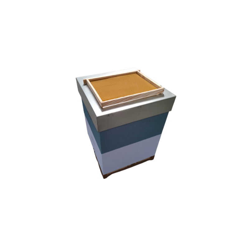 O modelo reversível permite alternar a utilização dos corpos, facilitando o maneio e acompanhando o desenvolvimento natural da colónia. Fornecida com quadros já montados com cera, está pronta a ser instalada, reduzindo o tempo de preparação no apiário.