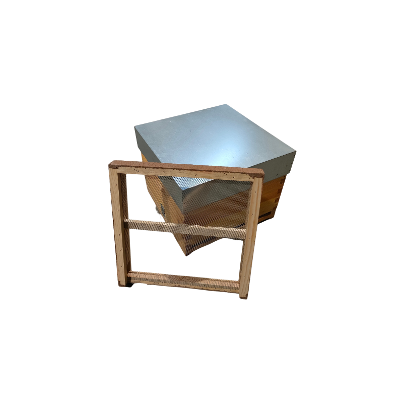 A Colmeia Reversível em Malhete com Estrado Sanitário é uma estrutura completa, desenvolvida para garantir ventilação ideal e controlo sanitário eficiente dentro da colmeia.