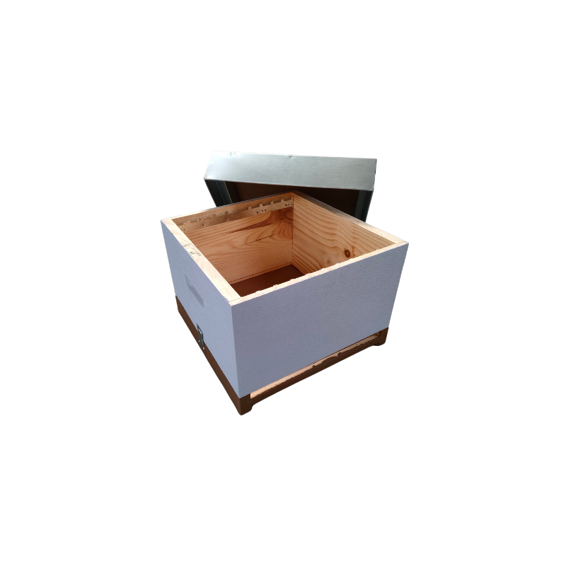O modelo reversível permite o uso alternado dos corpos, favorecendo o maneio e o desenvolvimento equilibrado da colónia. Fornecida sem alça e sem quadros, é uma base versátil para quem deseja preparar a colmeia desde o início.