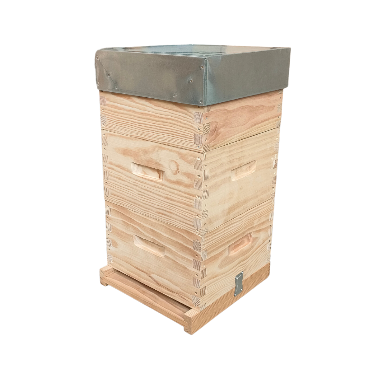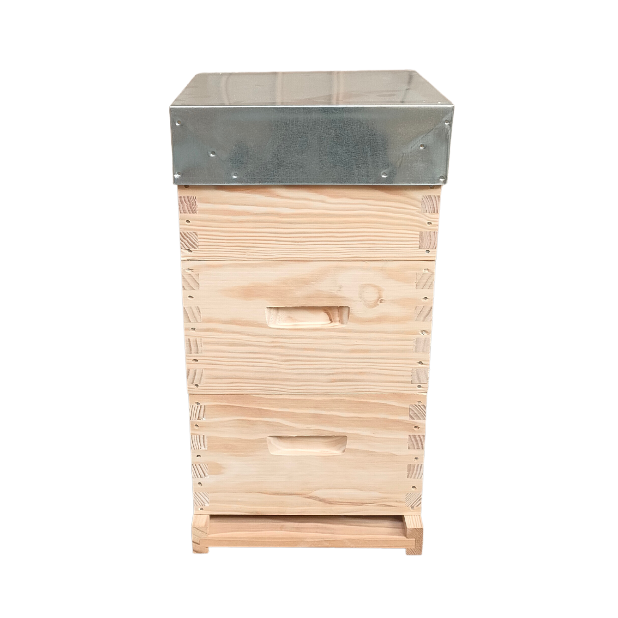 Fabricada em madeira de abeto com acabamento cru, utiliza cabeças com armações fechadas em vez de quadros completos, permitindo que as abelhas construam livremente os seus favos a partir de uma guia de madeira. Este sistema promove o comportamento natural da colónia e reduz o stress das abelhas.